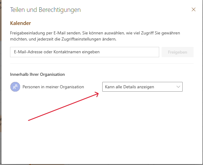 - Die Freigabe ist nun aktiv und alle Personen in Ihrer Organisation können alle Details Ihrer Kalendereinträge sehen